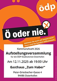 09.02.202609:00 - 11:00Osterhofen, Rathausvorplatz - 11ÖDP, Kreisverband Deggendorf